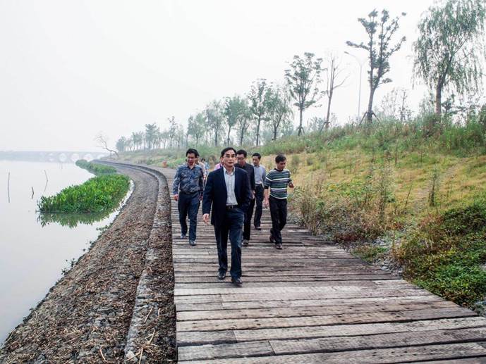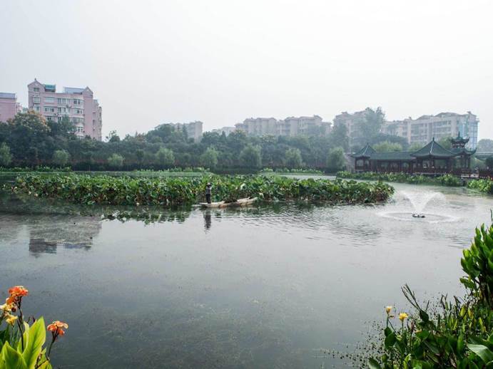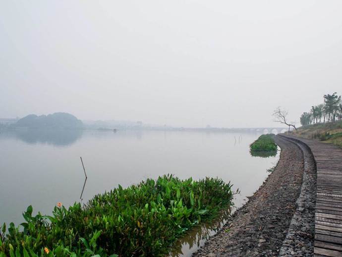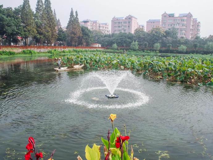 三、沾天湖施工的工程量也已基本完成,但沉水植物种植效果有待进一步提高,挺水植物与浮叶植物品质应进一步优化。在改善水质的前提下,提高景观效果与观赏性,人工浮岛调整布置区域,要做到功能性与景观效果并举。