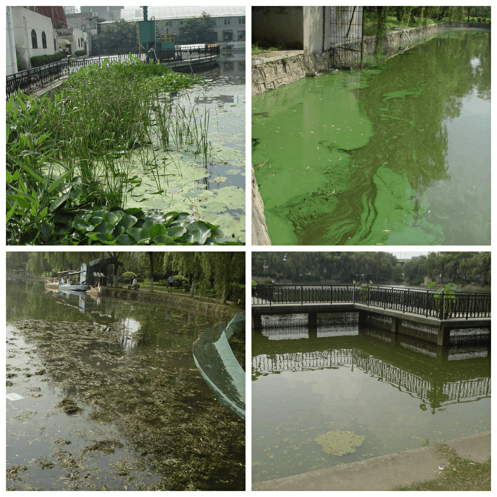 公园建成前,四美塘是一个垃圾集散地和工地废墟,湖塘水质呈墨色,散发着臭气,是蚊蝇的孳生地、城市环境建设的死角。工程实施前,2009年四美塘为劣Ⅴ类地表水质(GB3838-2002),氮、磷污染严重,重度富营养,蓝藻水华严重。