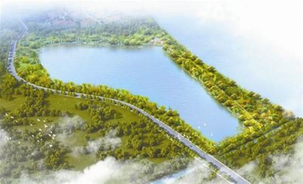 项目设计方介绍,公园建设时更多地选用碎石、片石、原木等材料,以便雨水收集、下渗,实现湿地的净化循环,发挥竹叶海的湖泊调蓄功能。为吸引更多鸟类、鱼类等生物栖息,将种植旱伞草、梭鱼草、狐尾藻、再力花、香蒲等20种湿地植物,形成层次丰富的植物链。此外,园区将种植各类乔木、花灌木共计70余种,近百种植物营造一条绿道观景视廊,并按四季变化,形成“夏雨香荷”、“杉林觅影”、“芦荻飞雪”等景观节点。