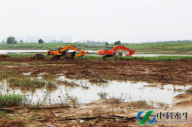 合肥高新区王咀湖生态湿地建设工程-生态补水、底质处理、生态湿地等水生态修复工程于2015年7月1日开工。王咀湖流域属于巢湖入湖支流派河上游右岸的支流之一,为环保规划内项目列入环巢湖生态保护修复二期工程。 王咀湖汇水面积约为7.61km2,2010年实施扩容后,湖面面积为0.61km2(610000平方米),死水位34.4m,正常蓄水位37.7m,相应库容140万m3,50年一遇设计洪水水位38.3m,500年一遇校核洪水位39.6m,总库容277万m3。工程实施的目标为:在彻底截污的基础上,进行水生