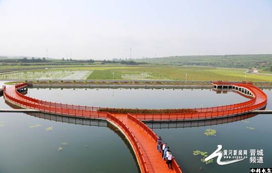 每逢周末,忙碌了一周的晋城市民都会携友相伴,驱车半个小时,到16公里以外的泽州县水北村丹河人工湿地游玩放松。 择半日闲暇时光,或徘徊于绿草茵茵的芦苇前,或尽情漫步于长长的栈道之上,或流连于碧荷涟涟的清水旁,或端坐于精致典雅的亭台楼阁下,看鲜花吐艳,赏水鸟飞舞,观鱼虾游荡。从2013年9月起,到这里游玩,已经成为晋城市民放松休闲的一种方式。 母亲河一度污染严重 大家或许不会想到,如今这个鸟语花香的“绿洲”,前身却是污染严重、众人不愿提及的一个地方。 丹河作为晋城的母