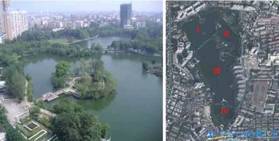 工程概况 四美塘是武汉市区的一个小型湖泊,位于武昌区四美塘公园内,长江二桥南岸桥头下,南临和平大道中部,北接武昌机务段,修建长江二桥时,湖泊被分为东塘、西塘。 四美塘公园平面图 01 存在的问题分析 公园建成前,四美塘是一个垃圾集散地和工地废墟,湖塘水质呈墨色,散发着臭气,是蚊蝇的孳生地,城市环境建设的死角。工程实施前,2009年四美塘为劣Ⅴ类地表水质(GB3838-2002),氮、磷污染严重,重度富营养,蓝藻水华严重。 根据武汉市政府“关于城市湖泊水质提